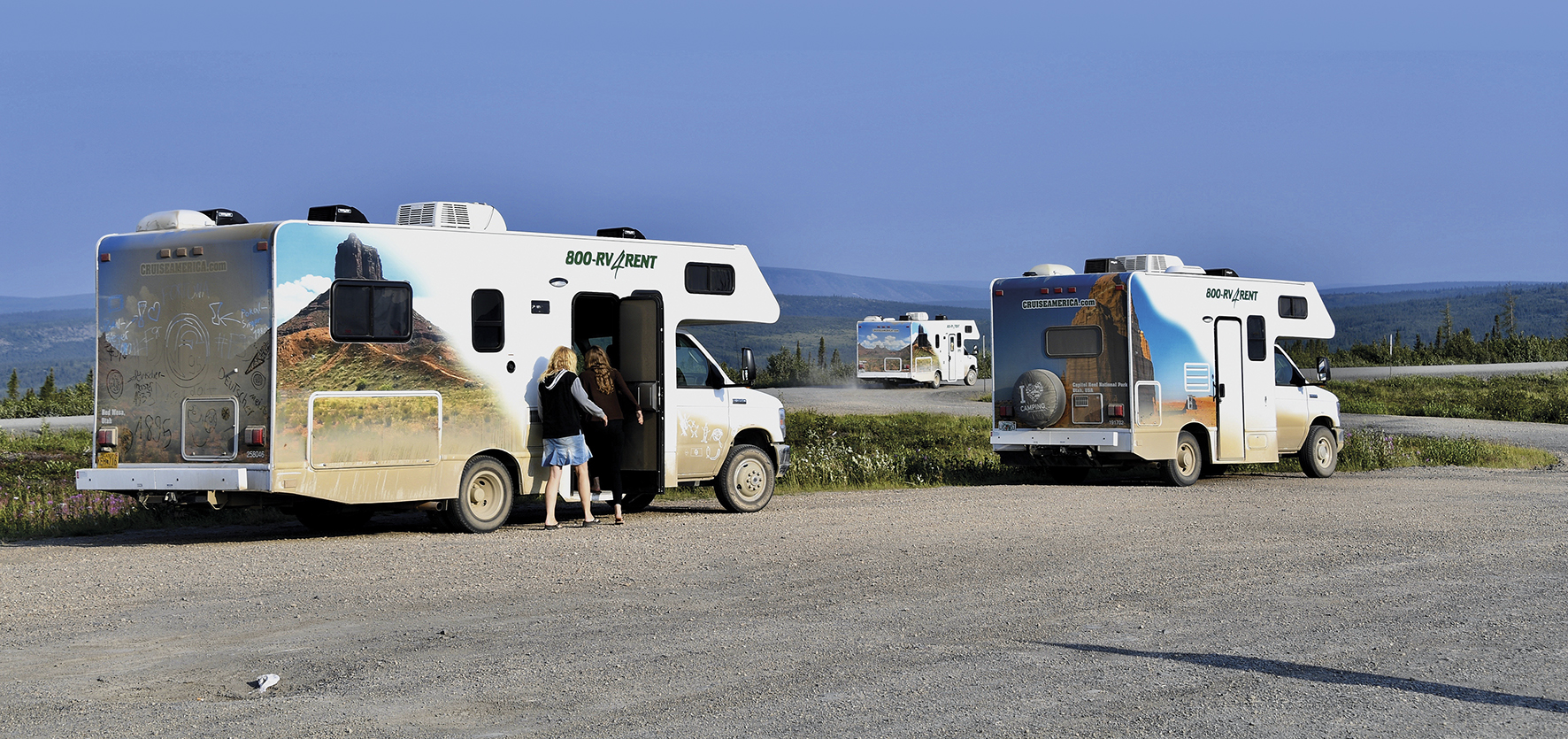 Die Motorhomes werden nach drei Tagen in Downtown San Francisco bzw. bei der Haupttour noch am Anreisetag in Los Angeles angemietet. Die Preise basieren auf einer Belegung von vier Personen im Fahrzeug. Die Zahl der Wageninsassen kann mehr oder weniger sein, entsprechend wird der Preis pro Person teurer oder billiger. Alle Führerscheininhaber (ab 21 Jahren) können sich ohne Aufpreis in der Mietstation eintragen und die Fahrerei teilen, aber natürlich nur in dem Wohnmobil, in dem man eingetragen ist. Zwei Typen und Größen sind verfügbar (kleinere Modelle sogar teurer). Model C25 ist optimal: